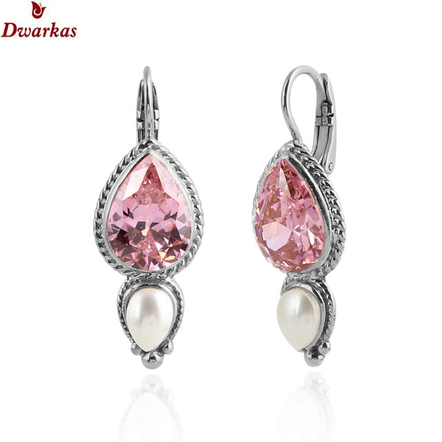 New hot design 925 sterling silver pink cubic zircon multi gemstone earring for women