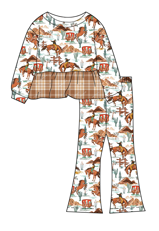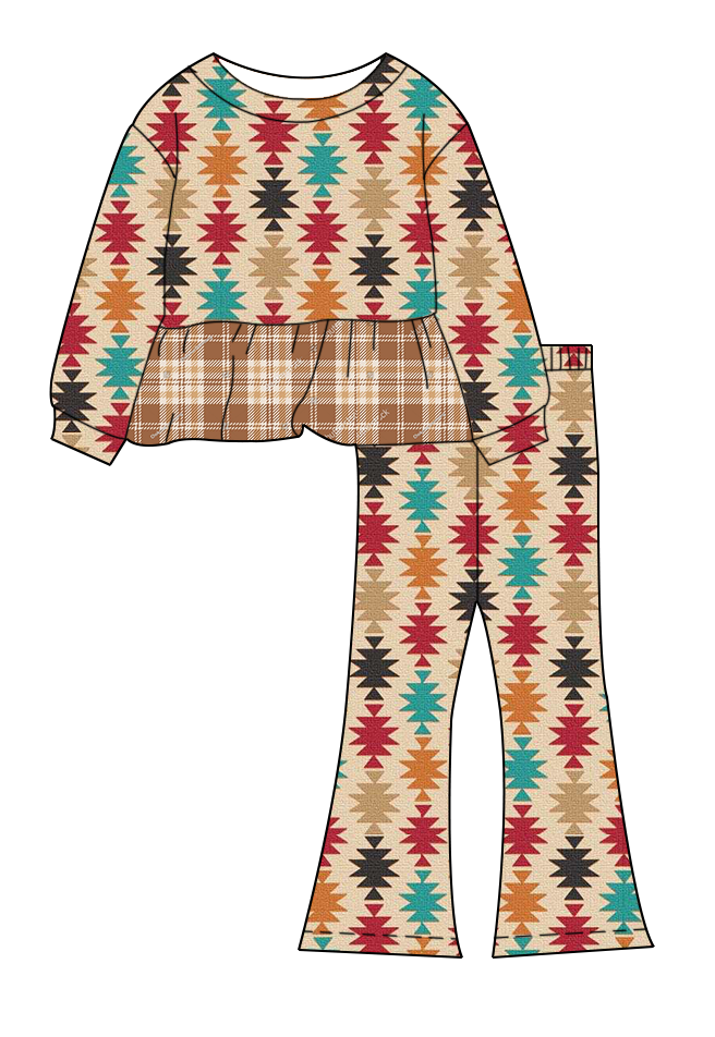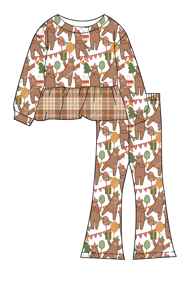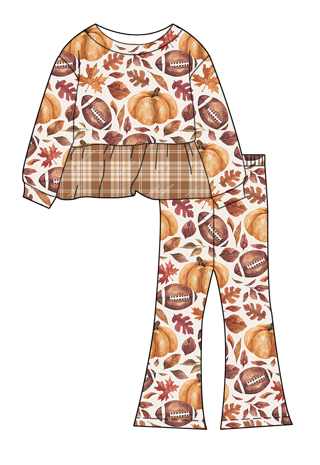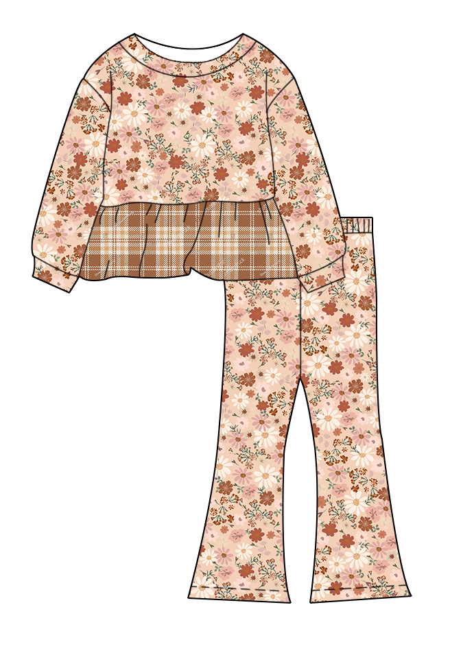 ชุดเด็กแขนยาวทรงเปปลัมและกางเกงขาบาน ใส่สบายสำหรับทุกวัน