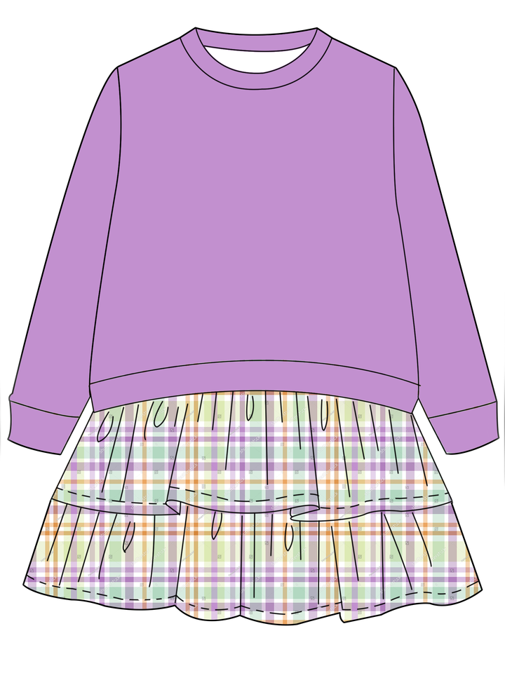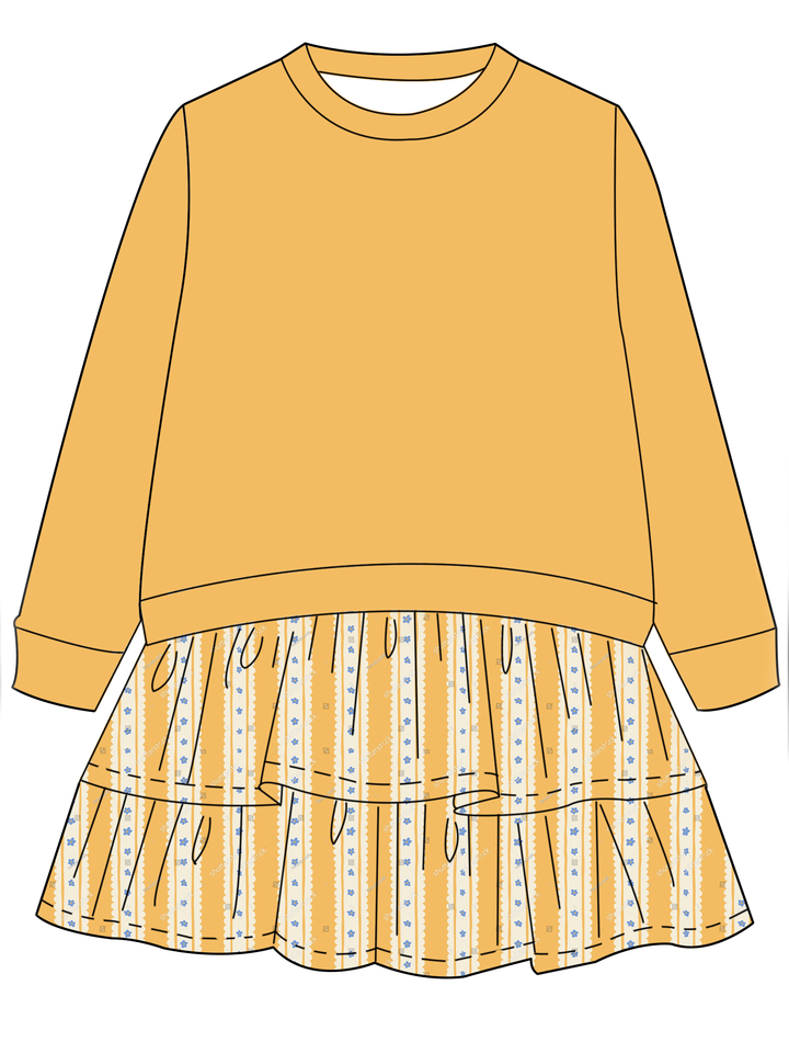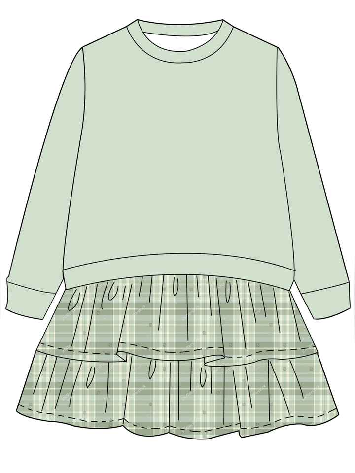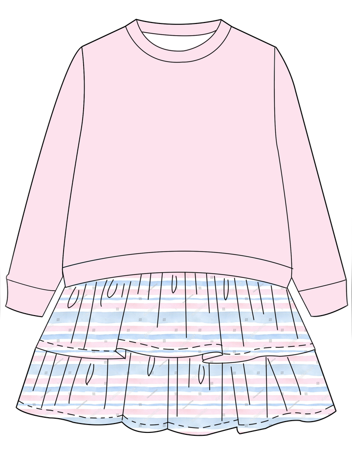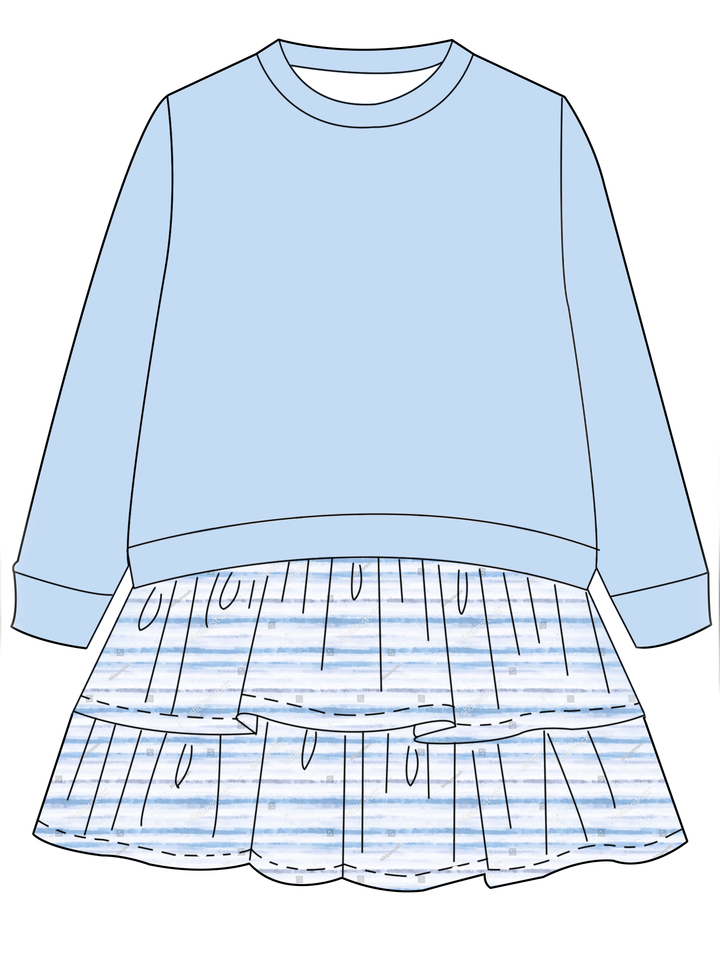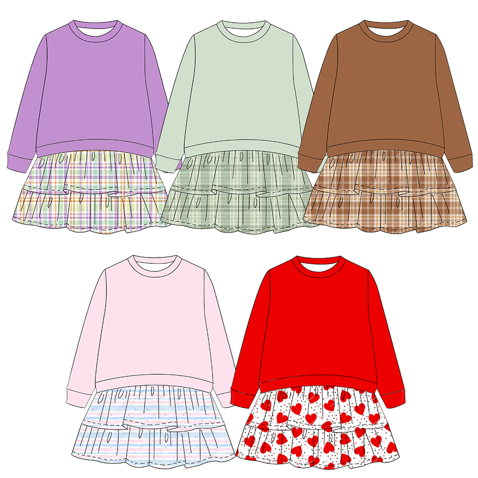 เสื้อแขนยาวคอกลมสำหรับเด็กเล็ก พร้อมกระโปรงระบายเป็นชั้นติดในตัว