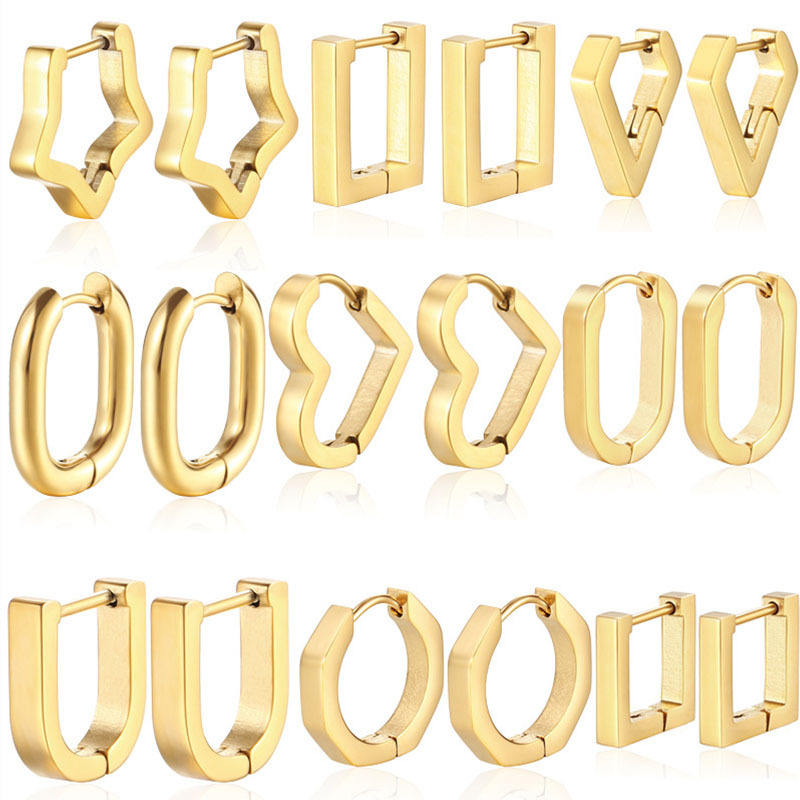 ต่างหูสแตนเลสแบรนด์หรูใหม่ ชุบทอง 18K ไทเทเนียมสตีล ต่างหูแบบเกี่ยวหูสำหรับผู้หญิง รูปทรงเรขาคณิตวงกลม เครื่องประดับ