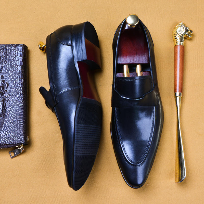 รองเท้าหนังวัวแท้สำหรับผู้ชาย ดีไซน์ใหม่ กันลื่น ระบายอากาศได้ดี สไตล์อังกฤษย้อนยุค ผสมผสานความเป็นเกาหลี เหมาะสำหรับใส่ทำงานและโอกาสทางการ