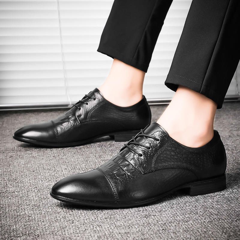 รองเท้าหนังทรงแหลมสำหรับผู้ชายไซส์ใหญ่แบบใหม่ พร้อมเชือกผูกรองเท้าสลักลายด้วยเลเซอร์ เหมาะสำหรับการสวมใส่ในโอกาสทางการทางธุรกิจ
