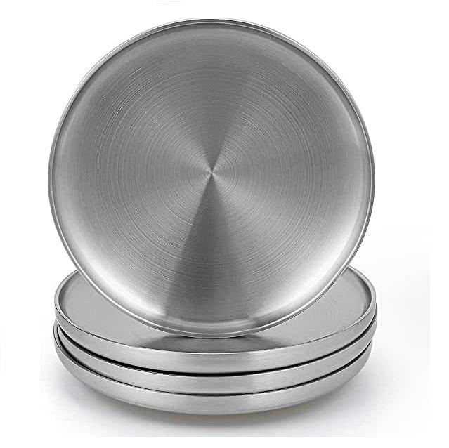 แผ่นรองสเตนเลสชิ้นเดียววัสดุไม่เป็นผิวหยาบชุบแวววาวสีเงินพรีเมียมแบบใหม่สำหรับใช้ในโรงแรม