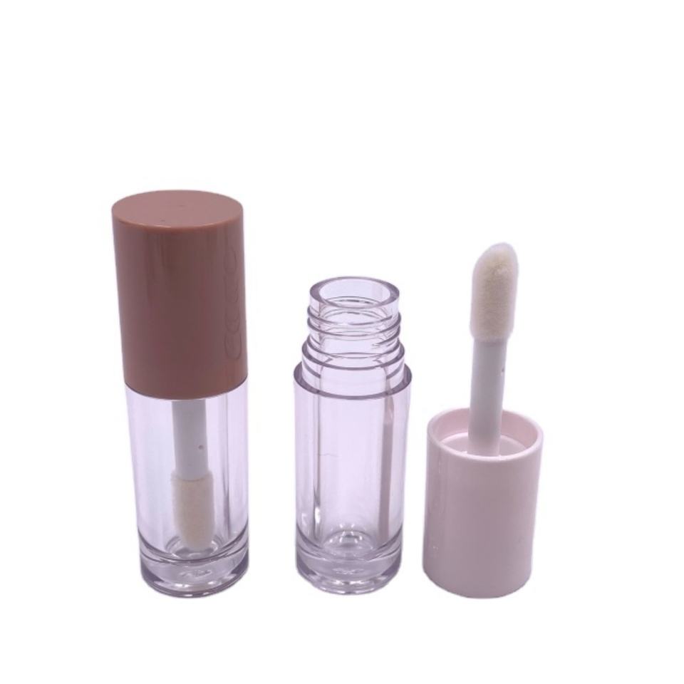 หลอดลิปกลอสสีชมพูแบบใหม่ หลอดเปล่าทรงกลมสำหรับลิปกลอส บรรจุภัณฑ์แบบแยกชิ้น หลอดแก้ว