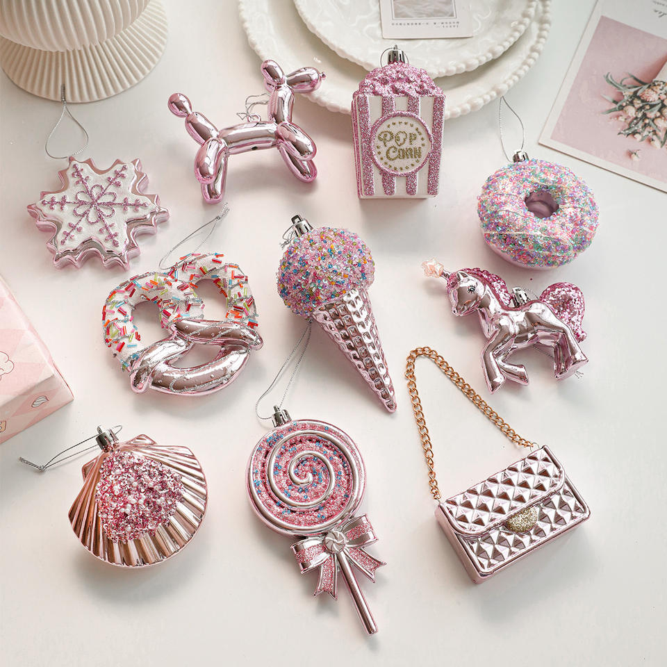 จี้พลาสติกรูปการ์ตูนผงเหนียวรูปการ์ตูนสามมิติสำหรับหน้าต่างต้นคริสต์มาสสีชมพูใหม่