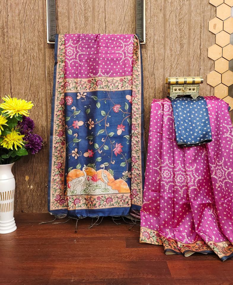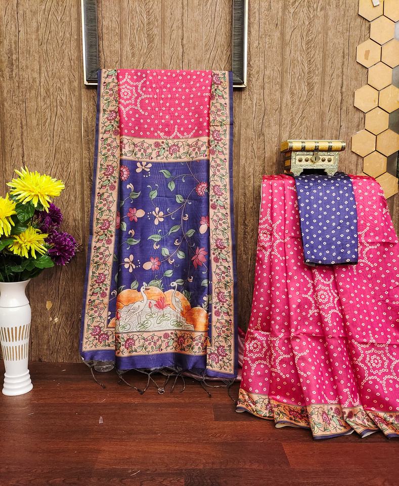 ชื่อผลิตภัณฑ์:ส่าหรีผ้าไหมดิบพร้อมบันดานิบัตติและคาลามารี