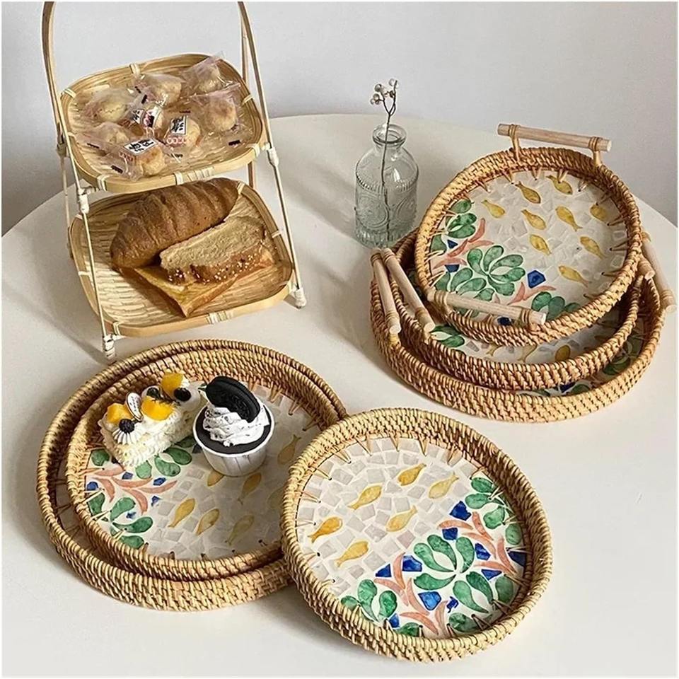 ถาดไม้ม็อบหวายถาดใส่ดอกไม้ถาดฝังหอยมุกลายดอกไม้พร้อมกรอบธรรมชาติสินค้าใหม่