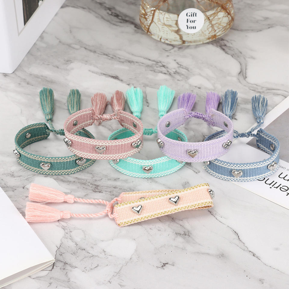 กำไลข้อมือสำหรับผู้ชายลายโบฮีเมียนประดับด้วยเชือกถักแบบมีพู่ห้อยสำหรับชายหาดสไตล์โบฮีเมียนยอดนิยมสีรุ้งใหม่