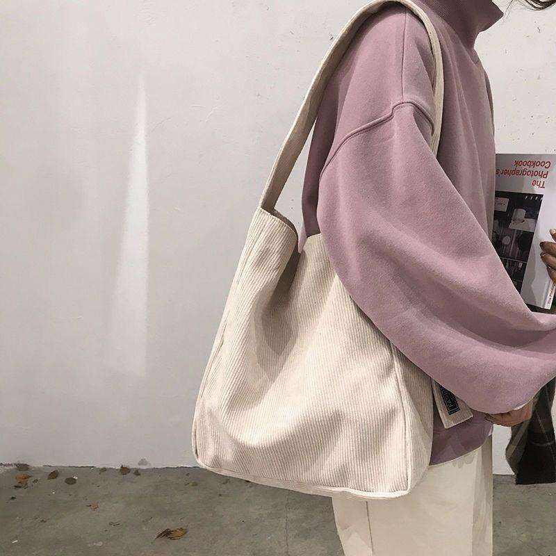New retro corduroy high-quality shoulder bag, large capacity women's handbag