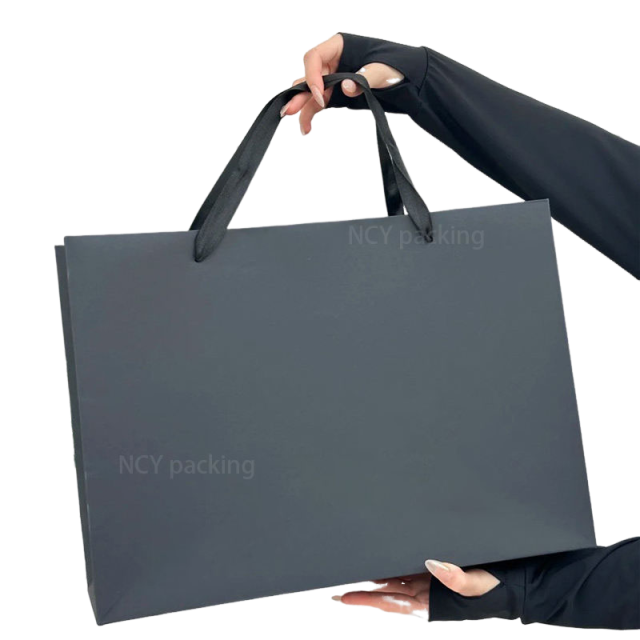 ถุงของขวัญทำมือเคลือบดำแบบคลาสสิก ผลิตจากกระดาษรีไซเคิล พร้อมเคลือบลามิเนต สำหรับแบรนด์หรู ธุรกิจขนาดเล็ก พร้อมโลโก้ งานฝีมือ
