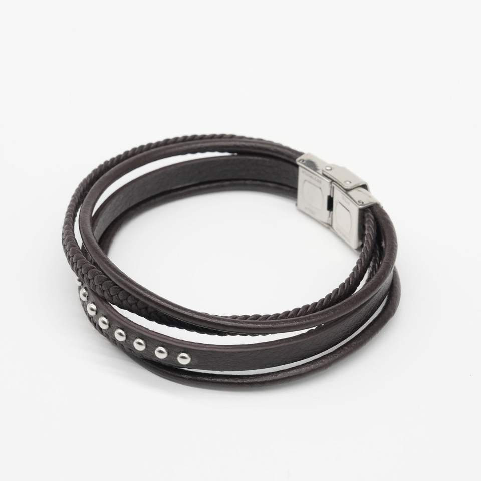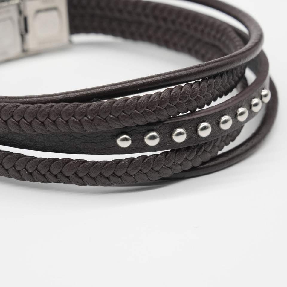 สร้อยข้อมือสแตนเลสสตีลแบบใหม่ สไตล์เรโทร ผสมหนังเย็บลายเรียบง่าย มีเอกลักษณ์เฉพาะตัว ทันสมัย เหมาะสำหรับใช้ในชีวิตประจำวันและงานปาร์ตี้