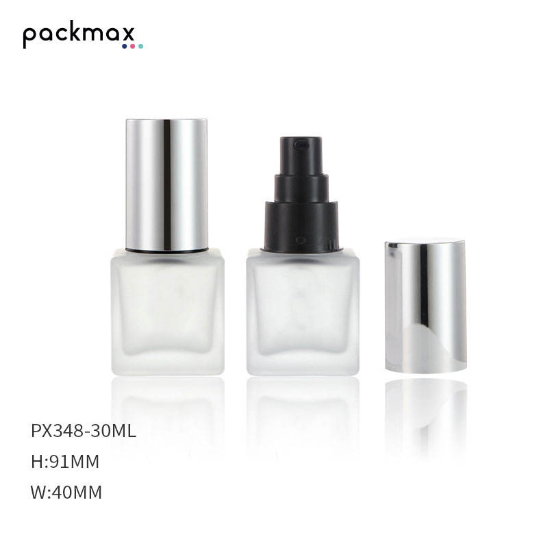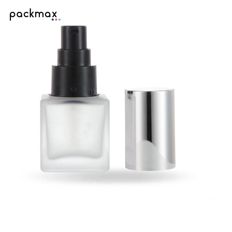 ขวดแก้วทรงเหลี่ยมก้นหนาขนาด 30 มล. รุ่นใหม่ พร้อมหัวปั๊มสเปรย์ใส เหมาะสำหรับบรรจุภัณฑ์เครื่องสำอาง รองพื้น และเซรั่ม