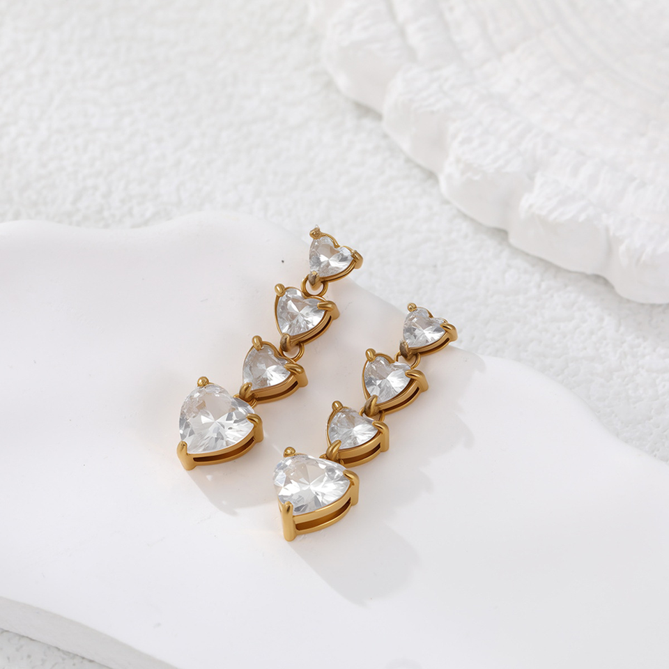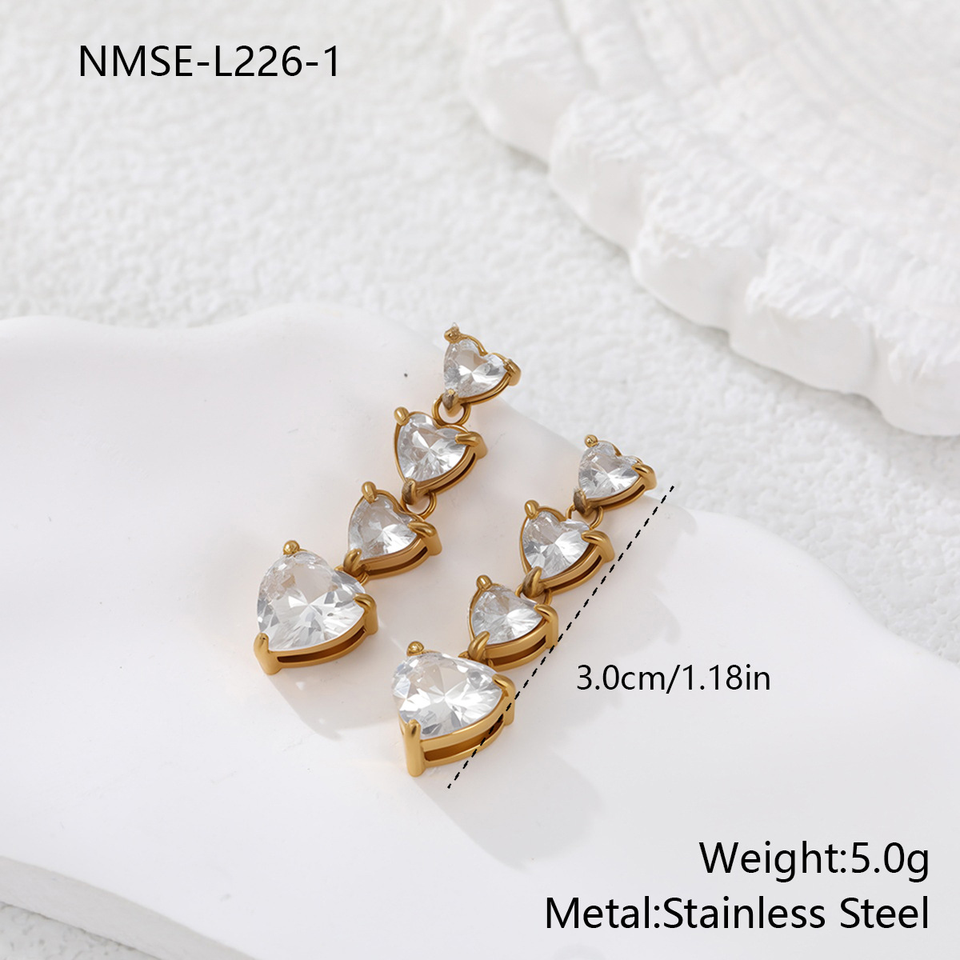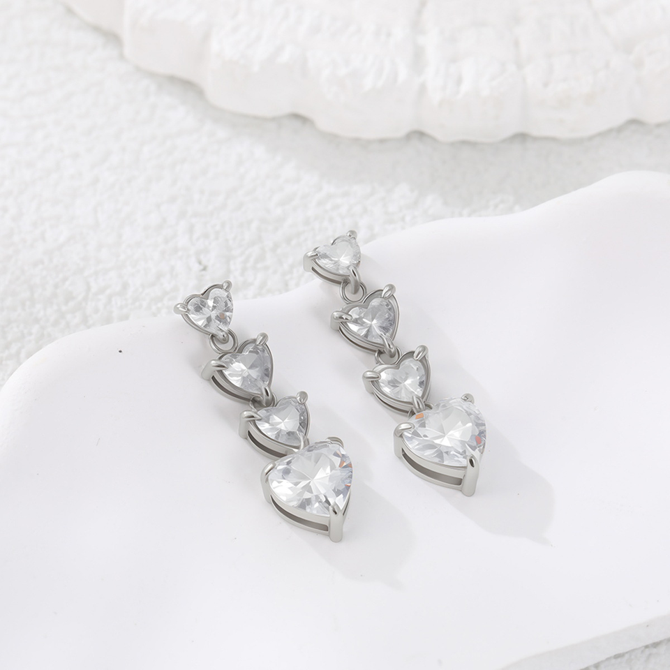 ต่างหูแบบใหม่สไตล์ฝรั่งเศสทรงหัวใจประดับเพชรเซอร์โคเนียคมกริบ พร้อมตัวเรือนไทเทเนียมสตีลคุณภาพสูง ดีไซน์หรูหรา