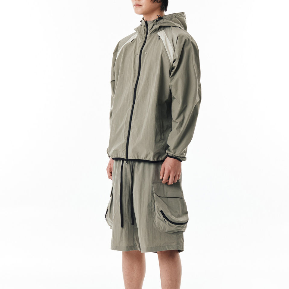 ชุดวินด์เบรกเกอร์แบบใหม่ ชุดกันลม เสื้อแจ็คเก็ตซิปและกางเกงขาสั้น ชุดสองชิ้นสำหรับผู้ชาย