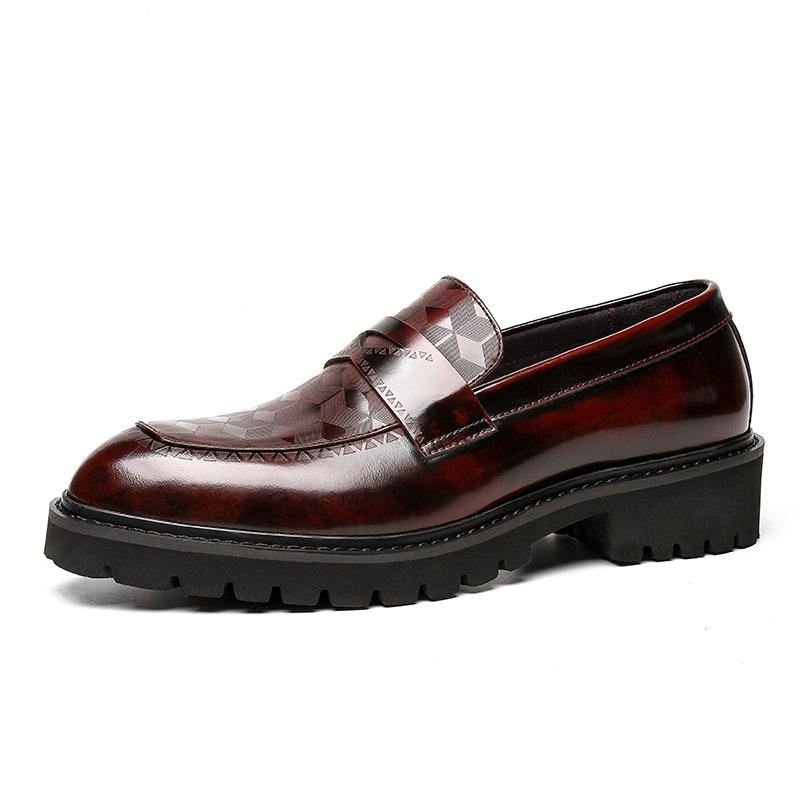 รองเท้าหนังผู้ชายทรงกลมหัวมน พื้นหนา สไตล์ลำลองแบบใหม่