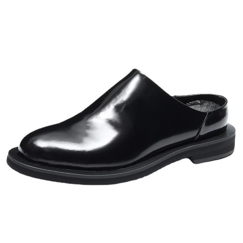 รองเท้าหนังผู้ชายแบบกึ่งกางเกงสไตล์ใหม่ทันสมัย พื้นหนาหนังแท้ ดีไซน์หน้ารองเท้าเงางามและทันสมัย