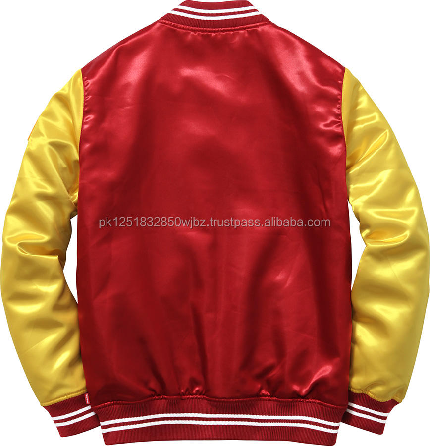แจ็คเก็ตแบบใหม่ราคาส่ง รับผลิตตามสั่ง แจ็คเก็ตซาตินบอมเบอร์ราคาส่งที่ดีที่สุด/แจ็คเก็ตซาตินสไตล์ Letterman สำหรับวิทยาลัย