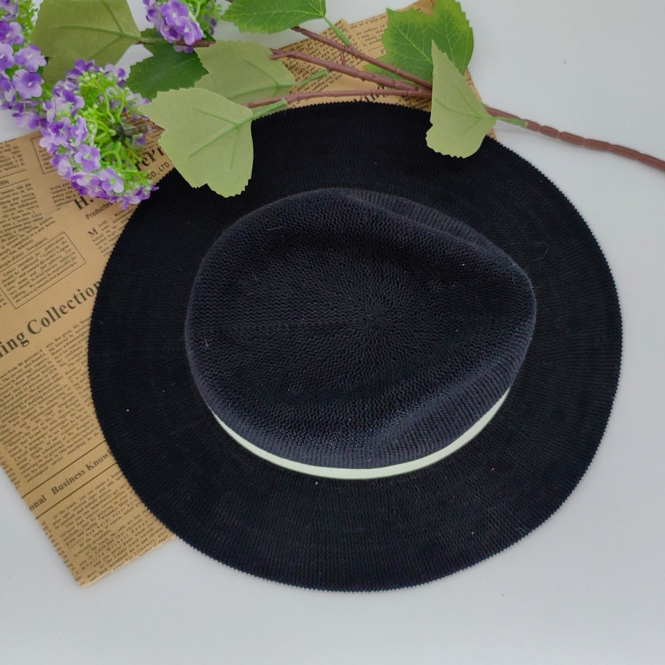หมวกปีกกว้างสีทึบแนวยุโรปอเมริกันสำหรับผู้หญิงหมวกถักไหมพรมขนแกะสไตล์ยุโรปอเมริกันสำหรับฤดูร้อนใหม่