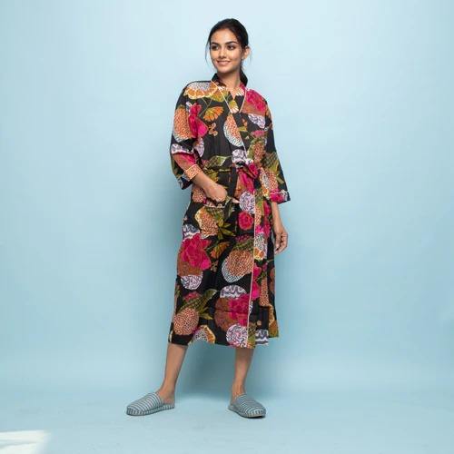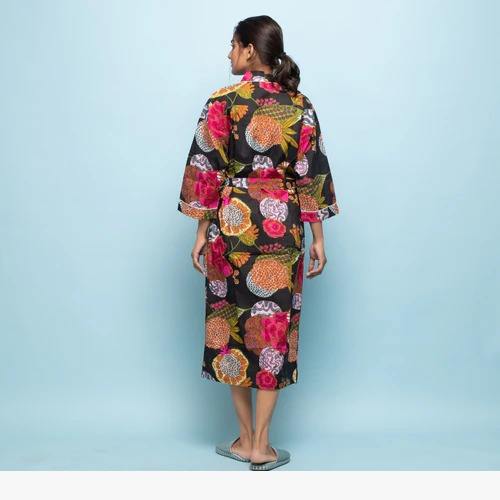 เสื้อกิโมโนพิมพ์ลายดอกไม้คอตตอนใหม่, ชุดใส่เดินชายหาดชุดมินิเดรสสำหรับว่ายน้ำฤดูใบไม้ร่วงฤดูใบไม้ผลิ