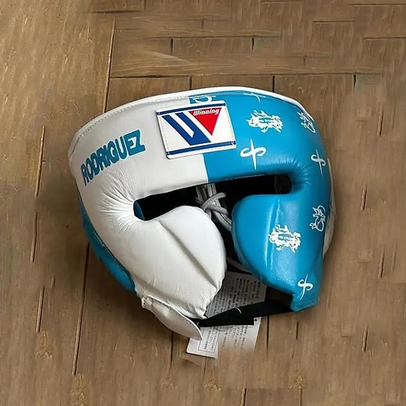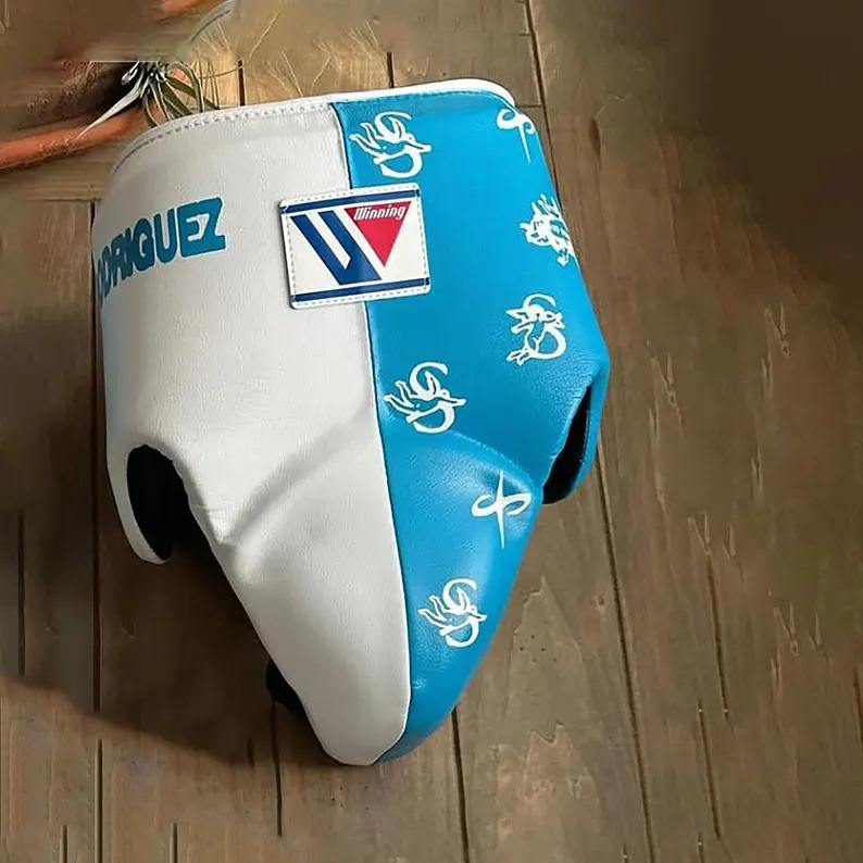 ชุดซ้อมมวยหนังหัวและขาหนีบชุดหนังสำหรับมืออาชีพแผ่นแปะสไตล์ไม่ซ้ำใครออกแบบโลโก้ได้ตามที่ต้องการ