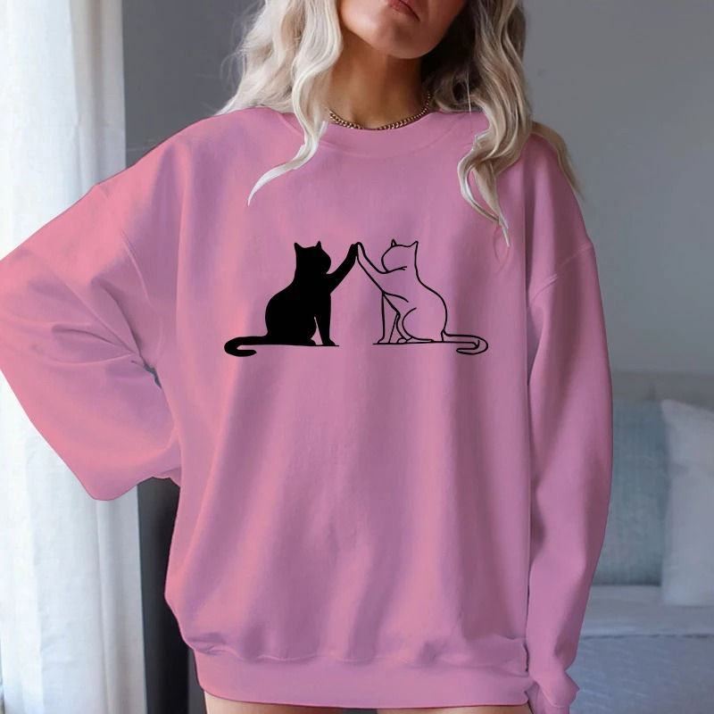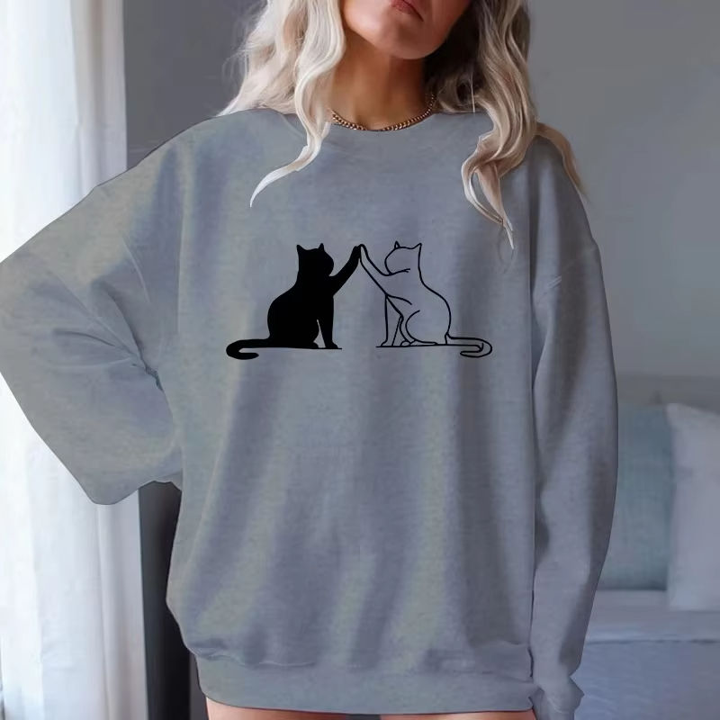 เสื้อสเวตเตอร์คอกลมแขนยาวทรงหลวมสำหรับผู้หญิงใหม่เสื้อกันหนาวคู่สำหรับฤดูใบไม้ร่วงฤดูหนาว