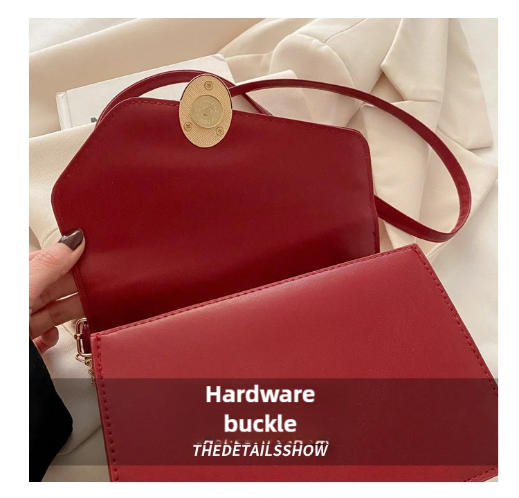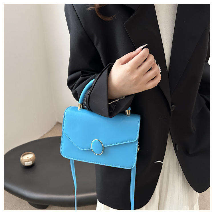 กระเป๋าสะพายข้างผู้หญิงแบบใหม่สไตล์เกาหลีเรโทร ดีไซน์บล็อกสีพื้น กระเป๋าทรงอานม้าแฟชั่นทำจากโพลีเอสเตอร์