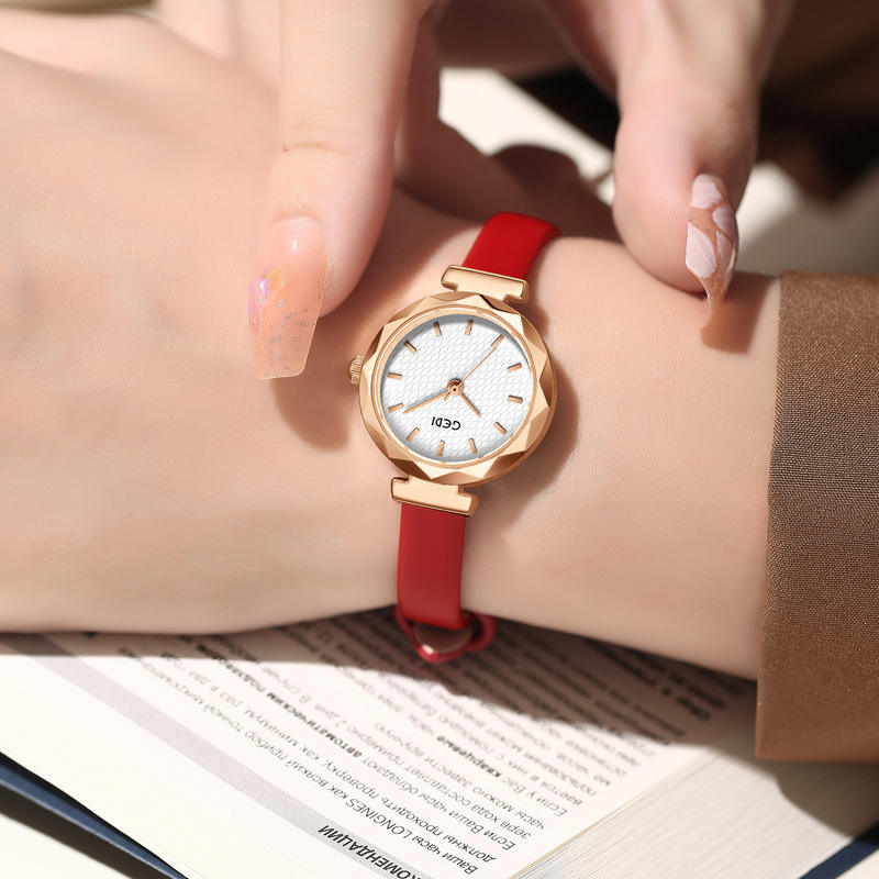 นาฬิกาควอทซ์ผู้หญิงใหม่หรูหราและกะทัดรัดสไตล์เกาหลีซอกกันน้ำสำหรับนักเรียน