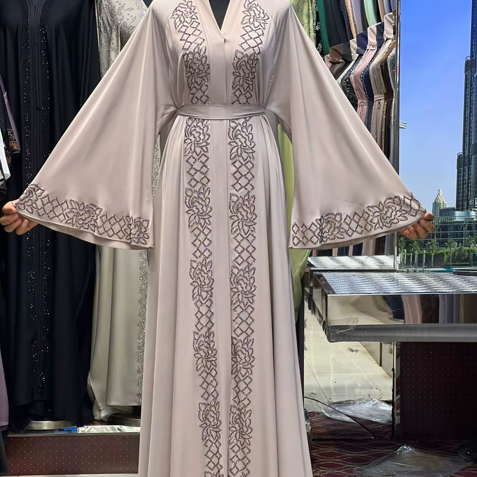 อาบายะห์ผู้หญิงสไตล์อิสลามแบบดั้งเดิมสีดำสวยงามจากดูไบ รุ่นใหม่ปี 2025 ผลิตจากโพลีเอสเตอร์ เหมาะสำหรับการละหมาด งานปาร์ตี้ฤดูหนาว ความยาวระดับข้อเท้า
