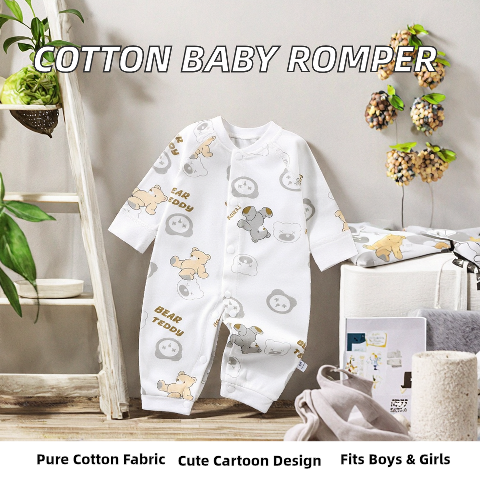 เสื้อผ้าเด็กแรกเกิดผ้าฝ้าย 100% แขนยาวฤดูใบไม้ผลิฤดูร้อนน่ารักการ์ตูนปุ่มสแน็ปปิด HENG SONG ทารกหญิงจั๊มสูทเต็มตัว
