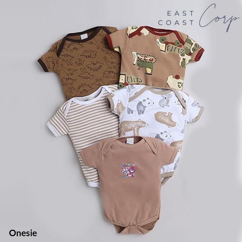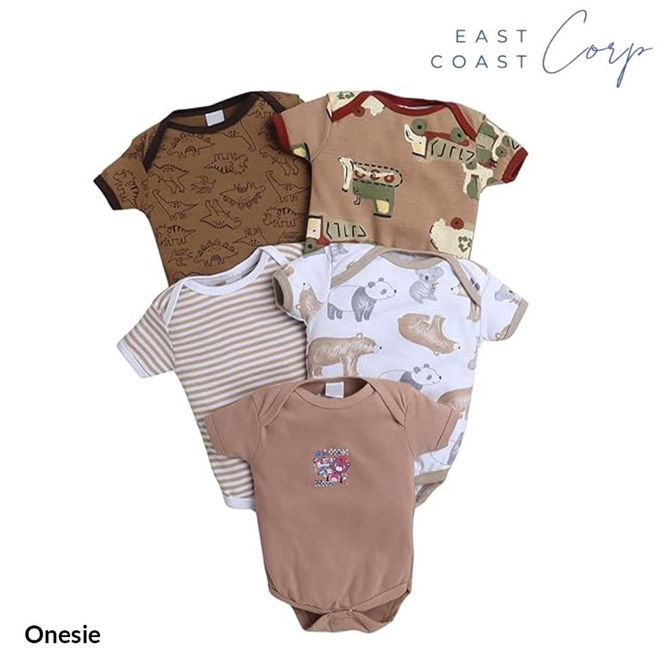 ชุดรอมเปอร์ผ้าฝ้ายสำหรับเด็กแรกเกิด | บอดี้สูทลายทางและลายพิมพ์แบบครึ่งแขน ปิดด้วยกระดุมแป๊ก ดีไซน์ลำลองสำหรับทุกเพศ
