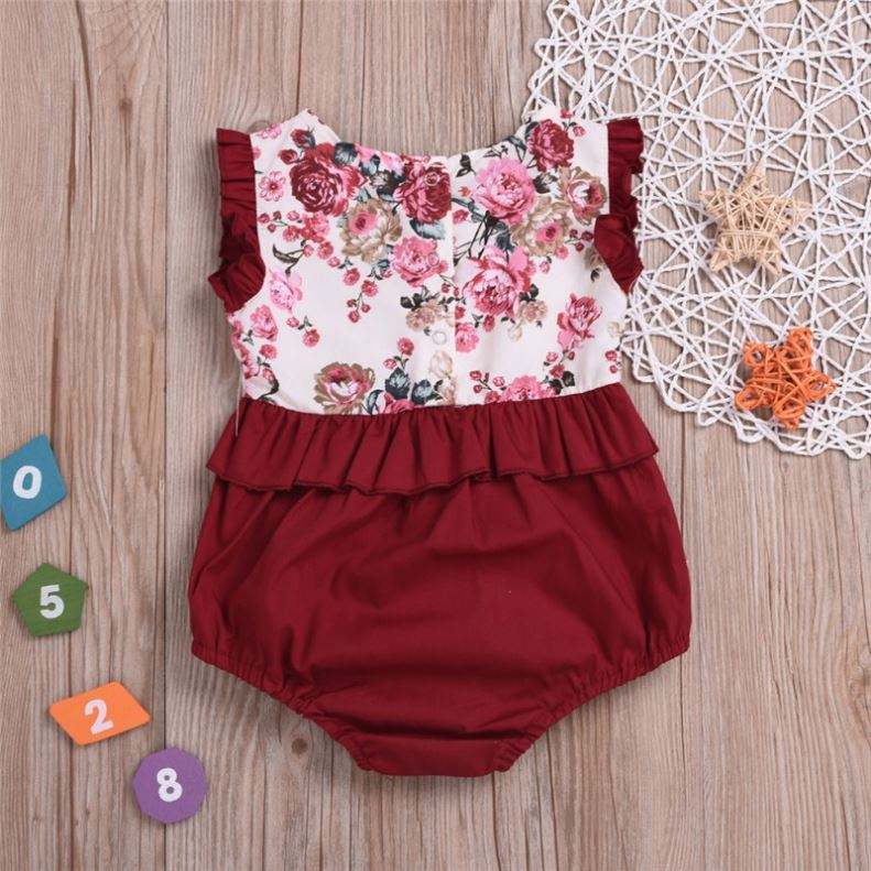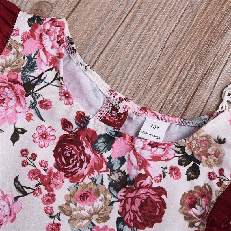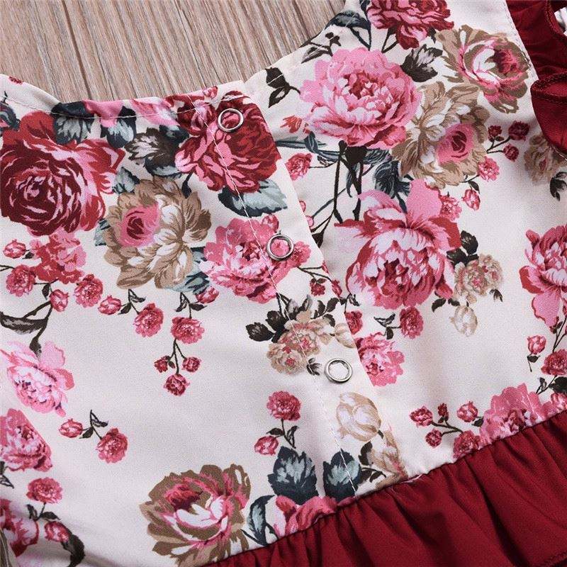 Newborn Baby Girl Baby Kids Flower Little Sister Romper Big Sister Dress Sleeveless Red Cotton Clothes Summer Cute