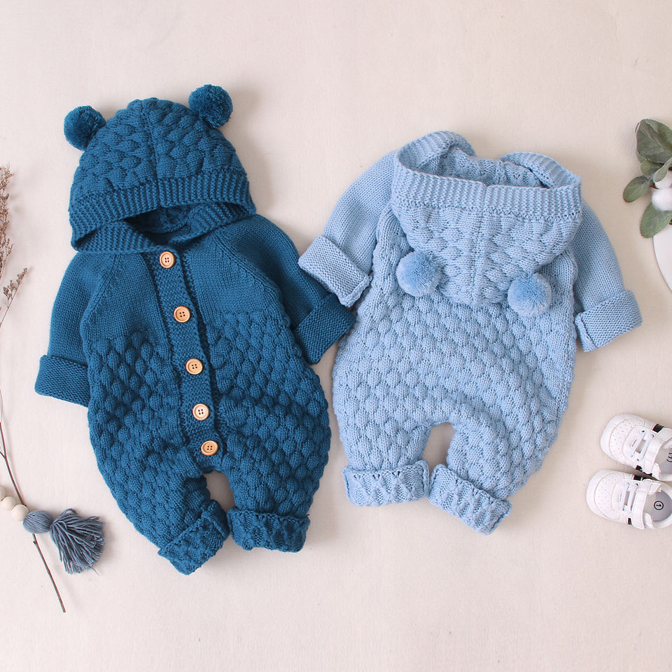 ชุดนอนเด็กอ่อนถักนิตติ้งแบบมีฮู้ด ชุดจั๊มสูทเด็กวัยหัดเดิน เสื้อกันหนาวเด็กทารก