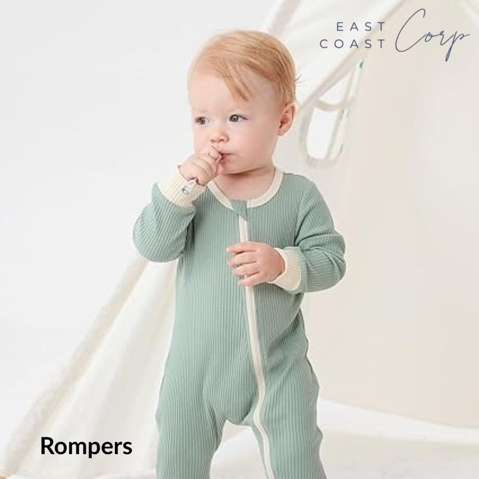 ชุดรอมเปอร์สำหรับทารกแรกเกิดและทารกจั๊มสูทแขนยาว2ทางมีซิป