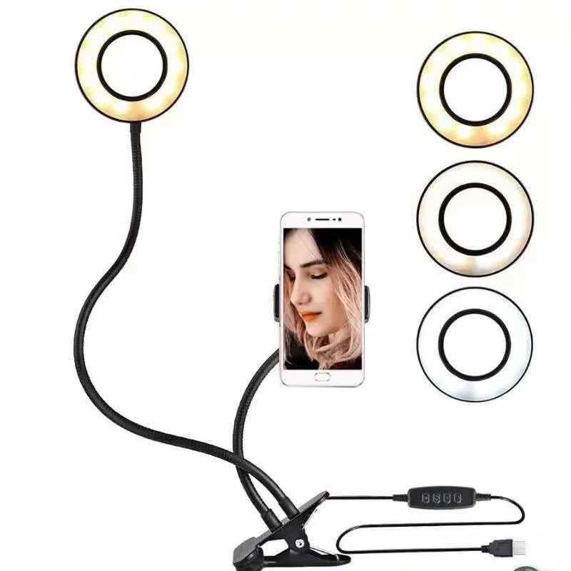 ไฟวงแหวนเซลฟี่แบบทูอินวัน,ที่วางโทรศัพท์แบบปรับได้แขนยาวพร้อมไฟ LED สำหรับ Youtube Live Stream Makeup