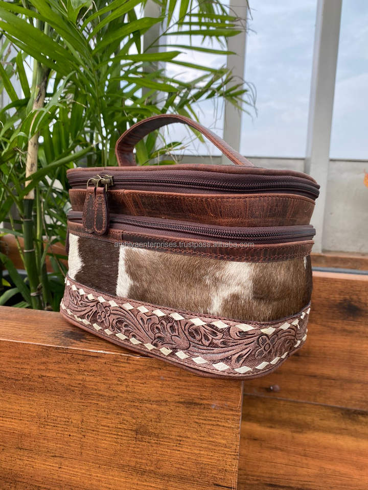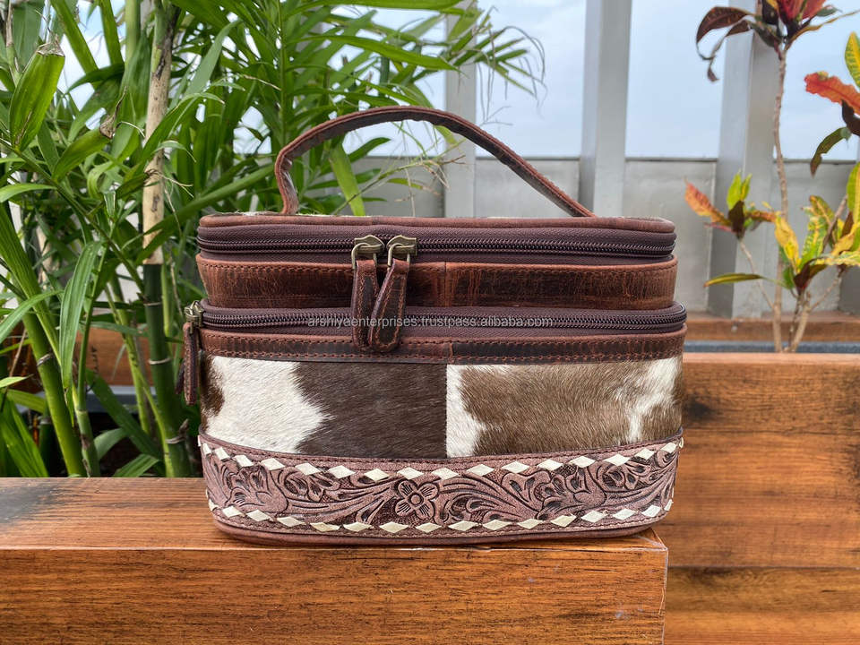 Women Cowhide Makeup Bag