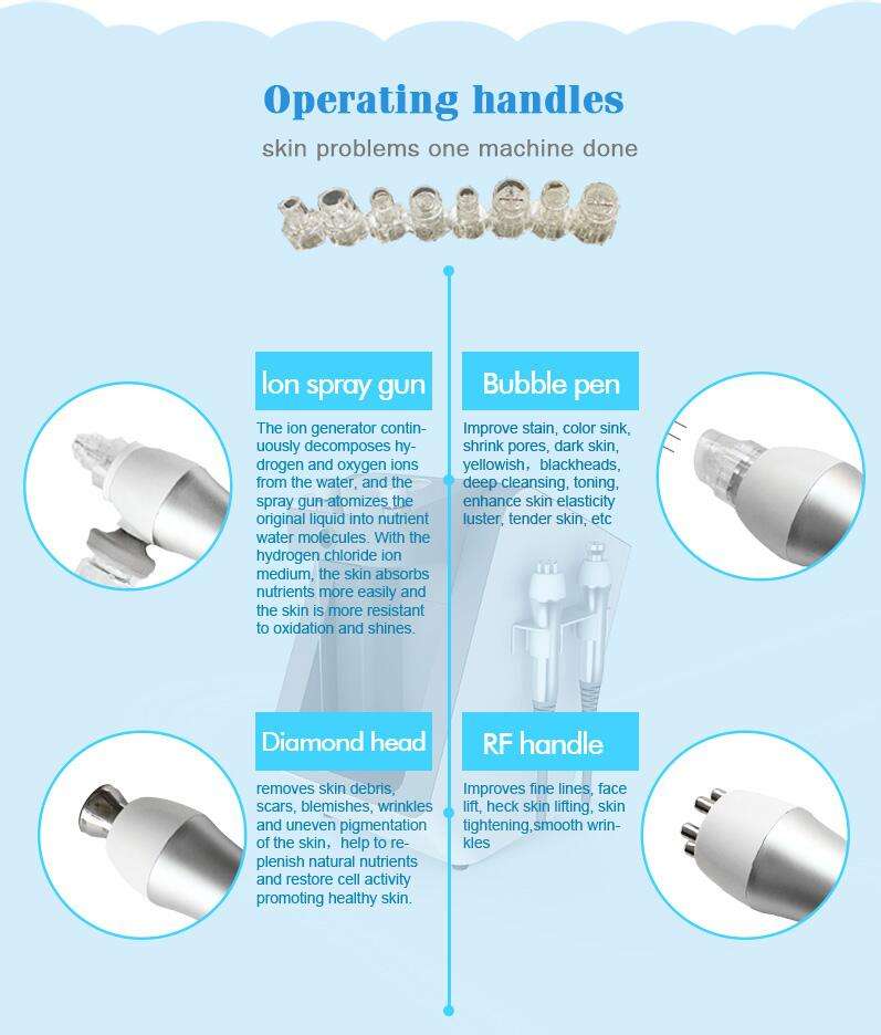 แฮนด์พีซ:Waterdermabrasion + ด้ามจับ microdermabrasion + ปืนพ่นไอออน + ด้ามจับ RF