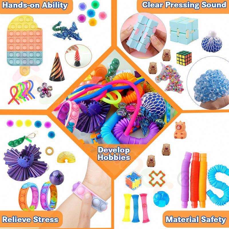 Newest 42pcs Anti-Stress for Pop Bubble Sensory Fidget Toys for Squishy Fidget Popper Pack Set for Kid Adults Stuffed Animal Toy