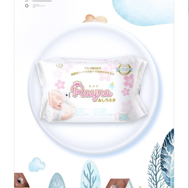 ผ้าเช็ดทำความสะอาดเด็กอ่อน ยี่ห้อ Amico ผลิตในญี่ปุ่น รุ่นใหม่ล่าสุด สำหรับผิวแพ้ง่าย Rayna Wets-56 กลิ่นซากุระ หนา ชุ่มชื้นล้ำลึก ไม่มีสารเติมแต่ง
