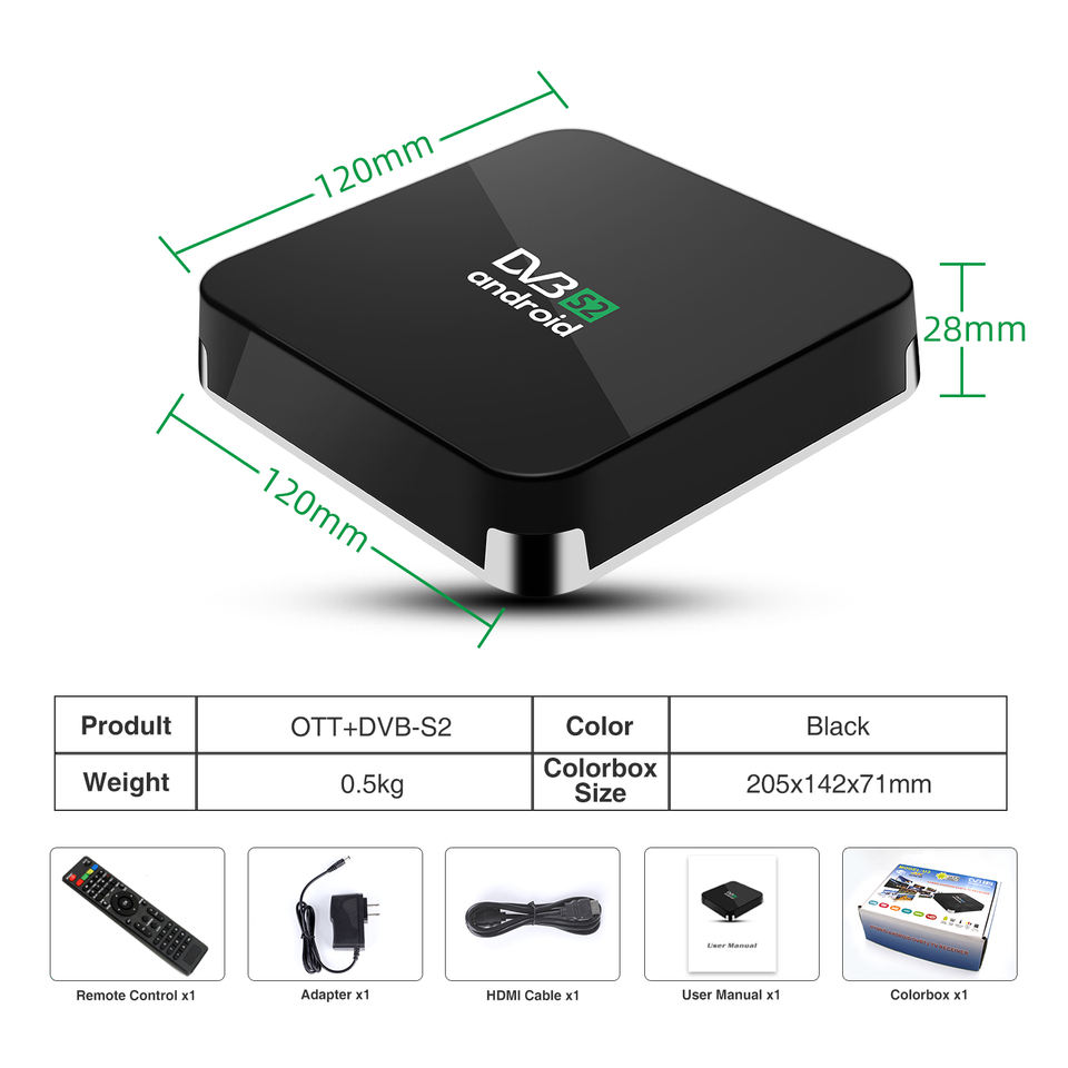 1 * ตัวรับ DVB-S2/OTT + 1 * รีโมทคอนโทรล + 1 * สายเคเบิล HD-MI + 1 * คู่มือผู้ใช้