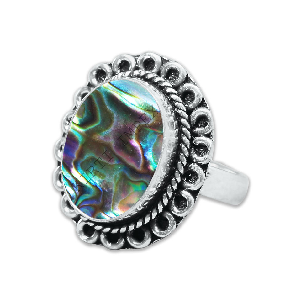 ใหม่ล่าสุด925แข็งเงินสเตอร์ลิงธรรมชาติเปลือกหอยเป๋าฮื้ออัญมณีรูปไข่แหวนหินเดี่ยวคุณภาพดีเครื่องประดับชั้นดี