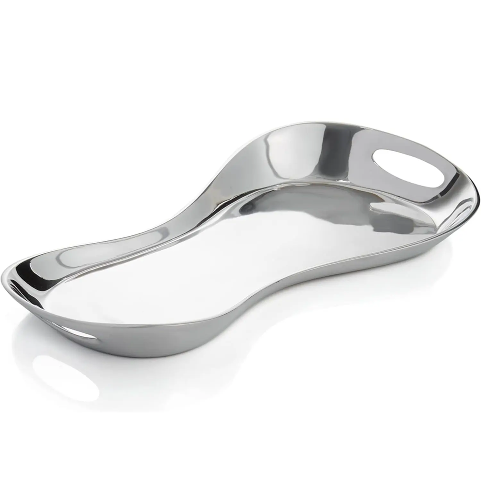 ถาดเสิร์ฟอลูมิเนียมทรงรีสำหรับผลไม้ถาดเสิร์ฟโลหะกันลื่นทนทานถาดเสิร์ฟพร้อมโลหะตกแต่งใหม่ล่าสุด