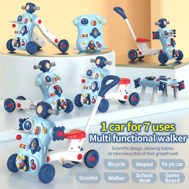 ใหม่ล่าสุดรถเข็นเด็กหัดเดินสกู๊ตเตอร์จักรยาน moped โต๊ะเรียนบอร์ดเกมรถ YOYO 7in1มัลติฟังก์ชั่นเด็กวอล์คเกอร์2024