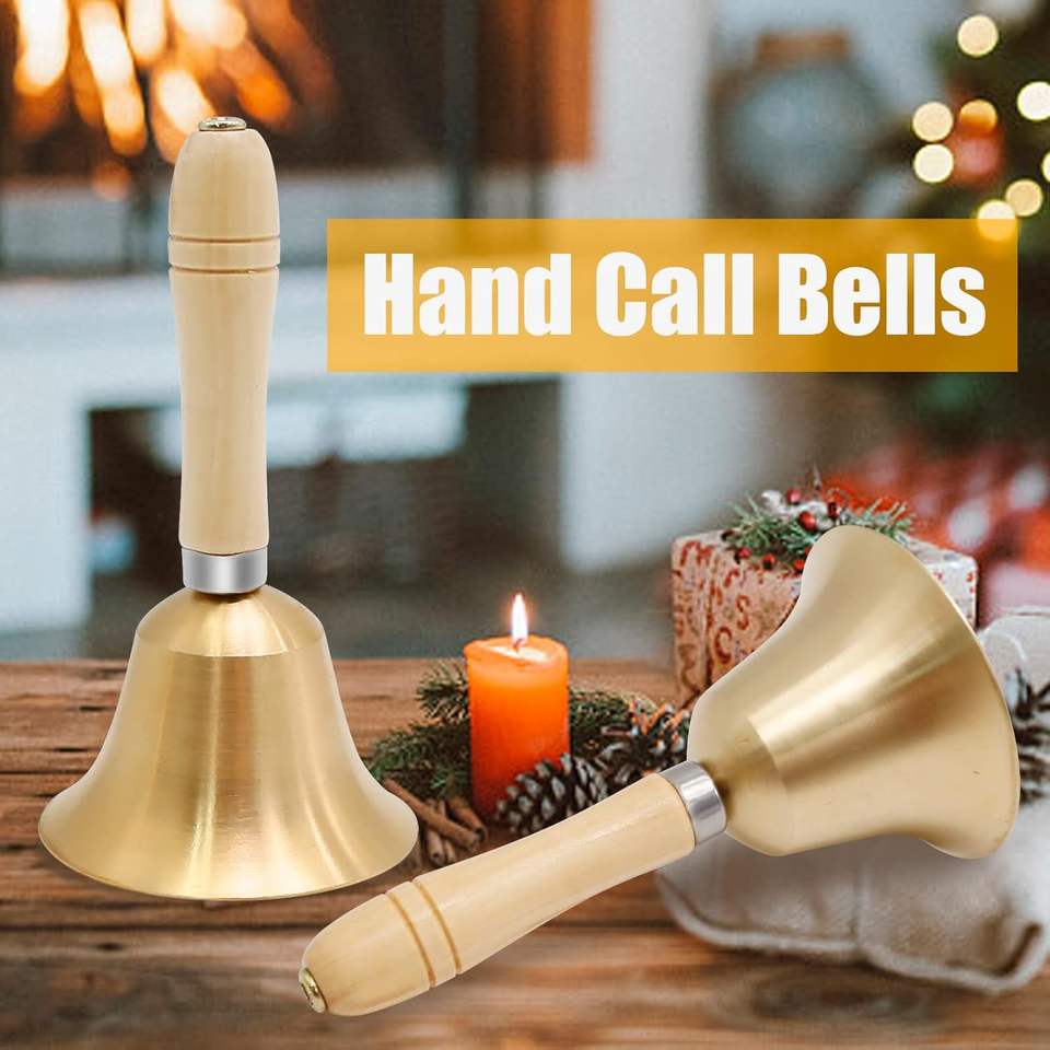 กระดิ่งมือระดับพรีเมี่ยมทำจากทองเหลืองพร้อมที่จับไม้สำหรับตกแต่งบ้านหรูหราพิธีกรรมการทำสมาธิด้วยเสียงใสเรียกเข้า