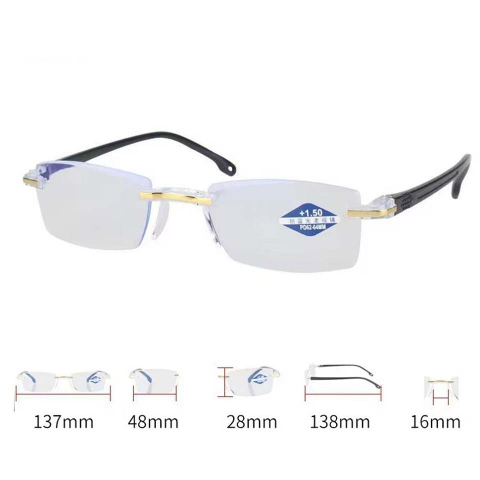 แว่นตาอ่านหนังสือกรองแสงสีฟ้าไร้กรอบทรงโปรเกรสซีฟแบบตัดเพชรรุ่นใหม่ราคาประหยัดสำหรับผู้ชายและผู้หญิง