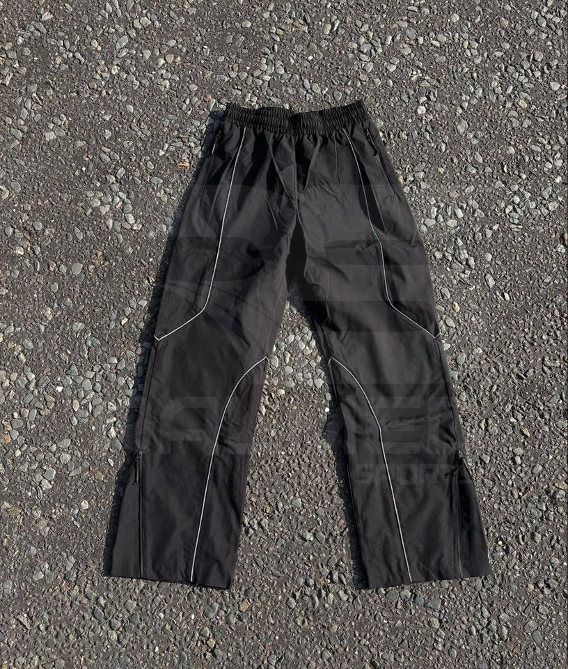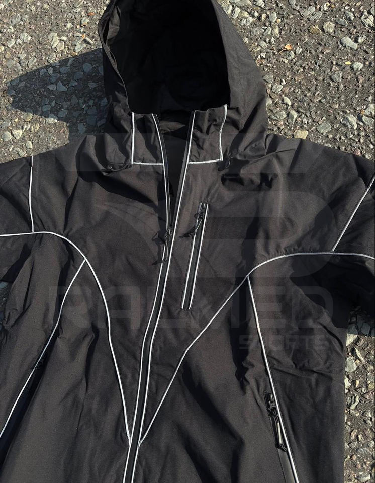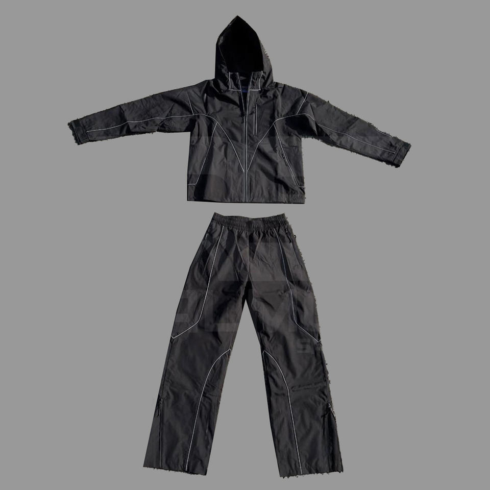 ชุดวอร์มแบบใหม่ล่าสุด กางเกงขาบานและแจ็คเก็ตซิป ผ้าสะท้อนแสง ไนลอน 100% กันน้ำ กันลม สำหรับผู้ชาย