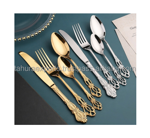 ชุดช้อนส้อมสแตนเลสโลหะดีไซน์ใหม่ล่าสุดชุดเครื่องใช้บนโต๊ะอาหารสำหรับเครื่องครัวส่งออกจากอินเดีย