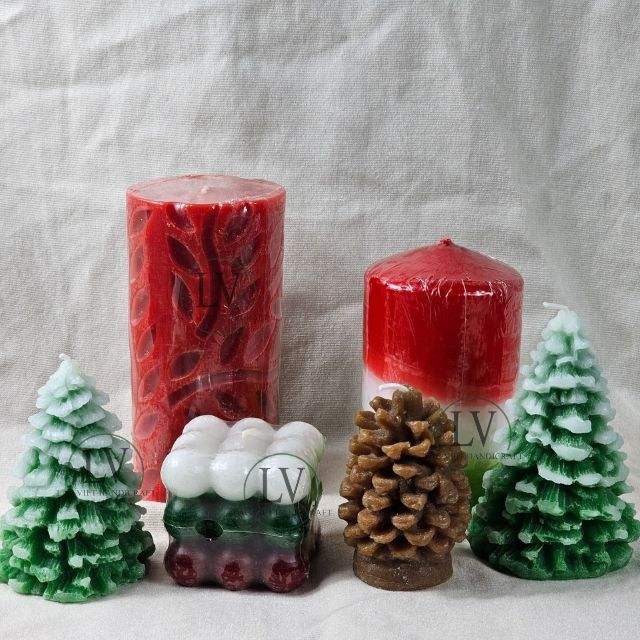 ชื่อผลิตภัณฑ์:เทียนไขถั่วเหลืองรูปทรงต้นสนสำหรับคริสต์มาส