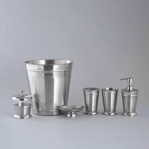 ชุดอุปกรณ์ห้องน้ำโลหะทันสมัยแบบใหม่ล่าสุด 7 ชิ้น ดีไซน์รักษ์โลก สีเงิน ประกอบด้วย ถังขยะ ที่วางสบู่ และที่จ่ายสบู่