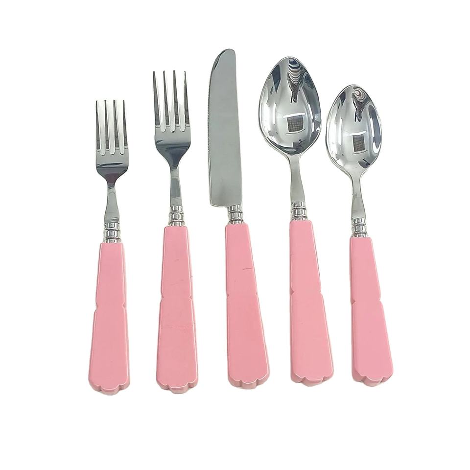 Newest Design Shiny Silver Plated Cutlery Set with Pink Resin Handle for Wedding Party Dinnerware Flatware Sets