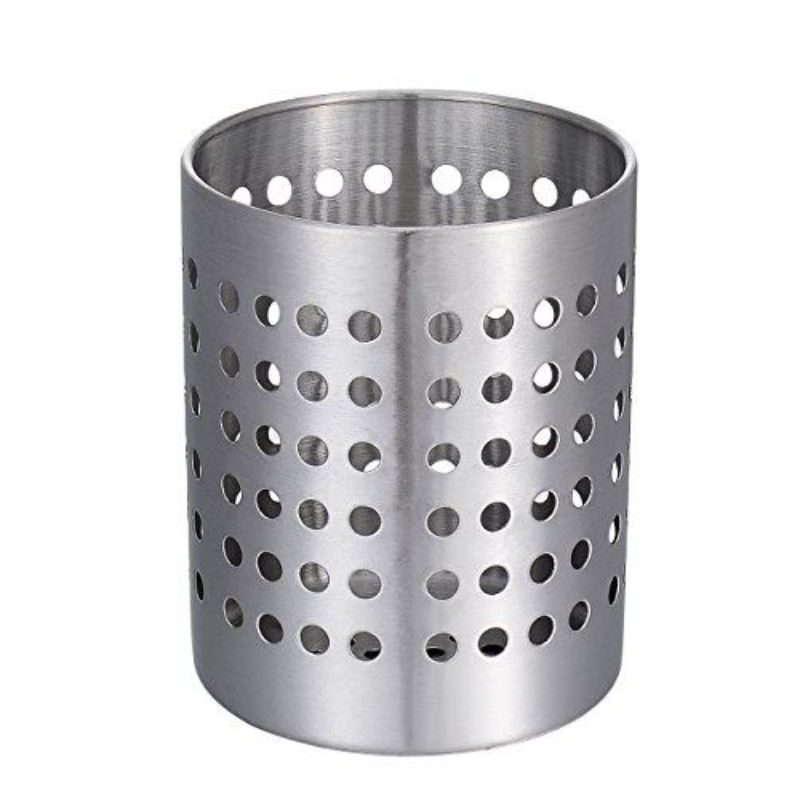 ที่ใส่ช้อนส้อมโลหะเคลือบเงิน ดีไซน์ใหม่ล่าสุด พร้อมหูจับ สำหรับจัดระเบียบบนเคาน์เตอร์ครัว